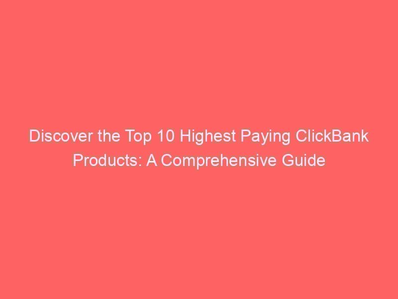 Get ready to discover the highest paying ClickBank products that could potentially change your life, both financially and personally.